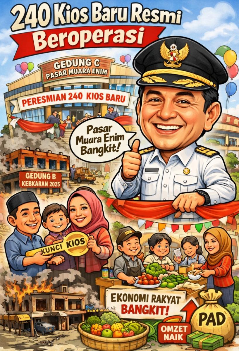 MUARA ENIM, FAJARSUMSEL.COM – Bupati Muara En, H Edison, meresmikan Gedung C Pasar Muara Enim yang menghadirkan 240 kios baru, Rabu, (18/2/2026).