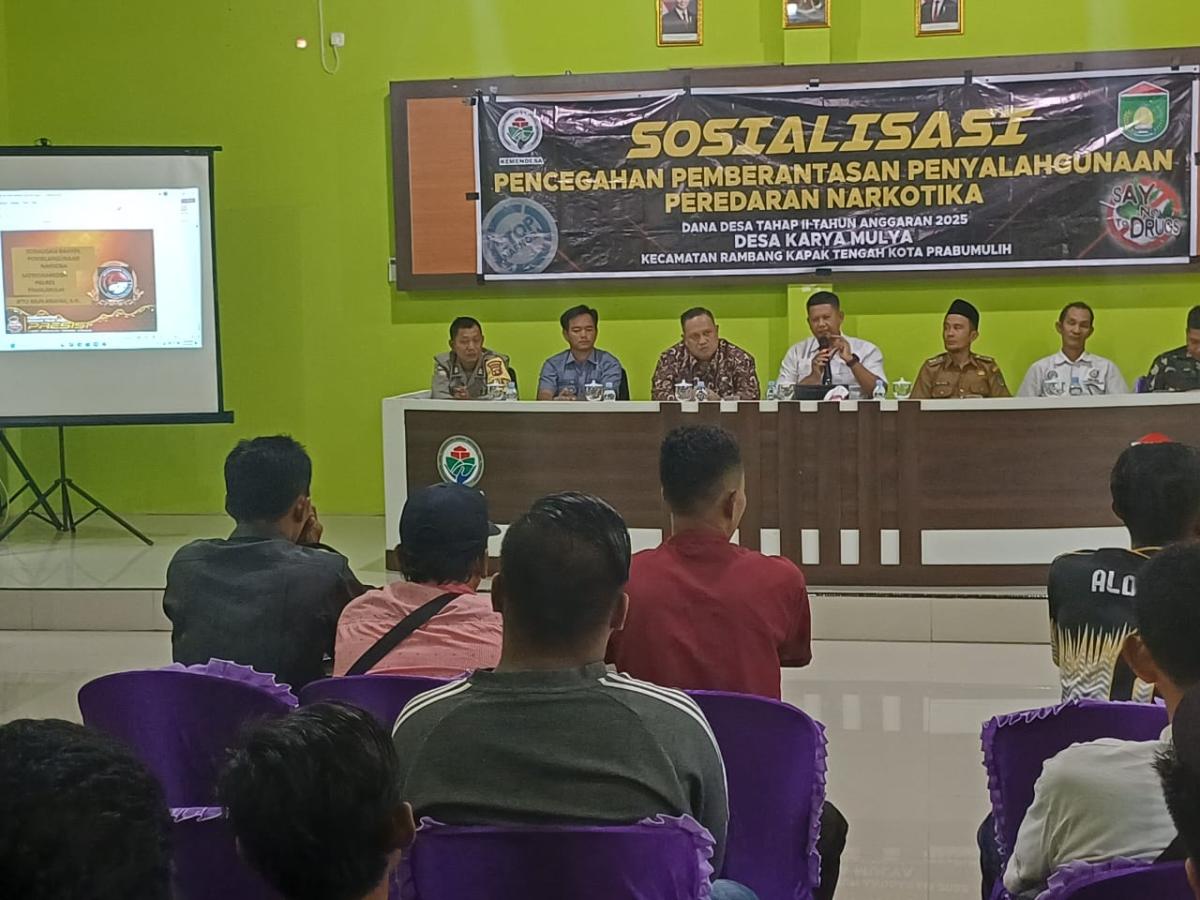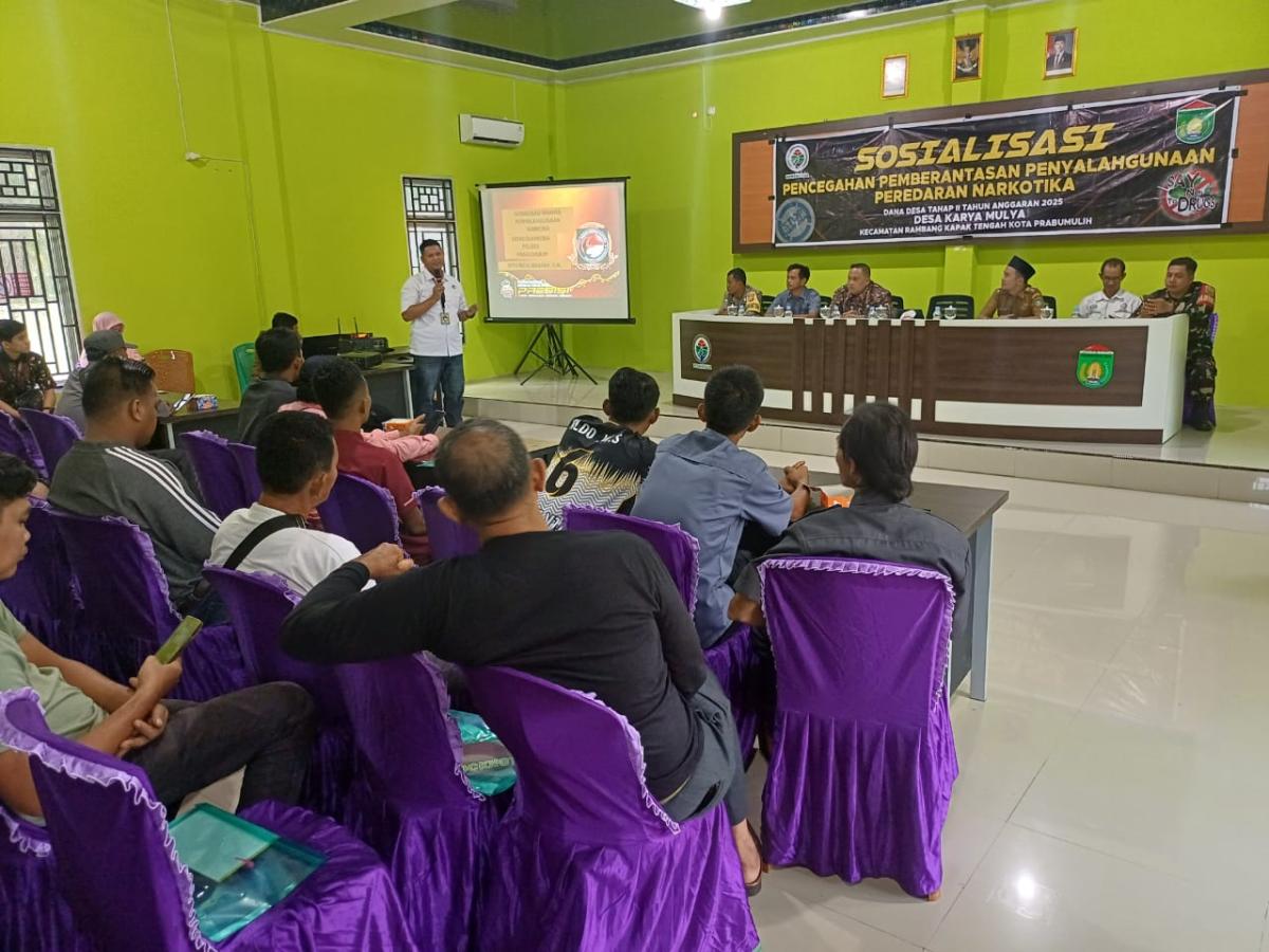 PRABUMULIH, FAJARSUMSEL.COM – Kasatres Narkoba Polres Prabumulih, Iptu Muhammad Arafah SH menjadi narasumber utama dalam kegiatan Sosialisasi Pencegahan dan Pemberantasan Penyalahgunaan serta Peredaran Gelap Narkotika digelar pada Selasa, 12 Agustus 2025, bertempat di Balai Rakyat Desa Karya Mulya, Kecamatan RKT, Prabumulih.