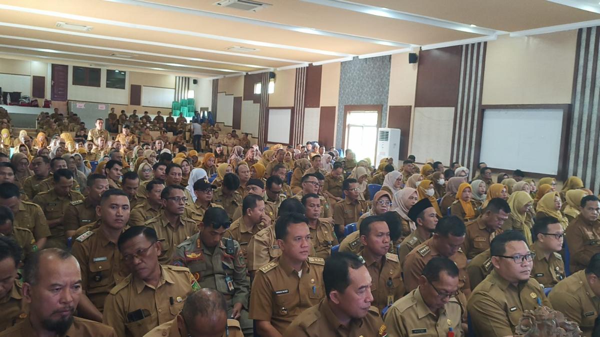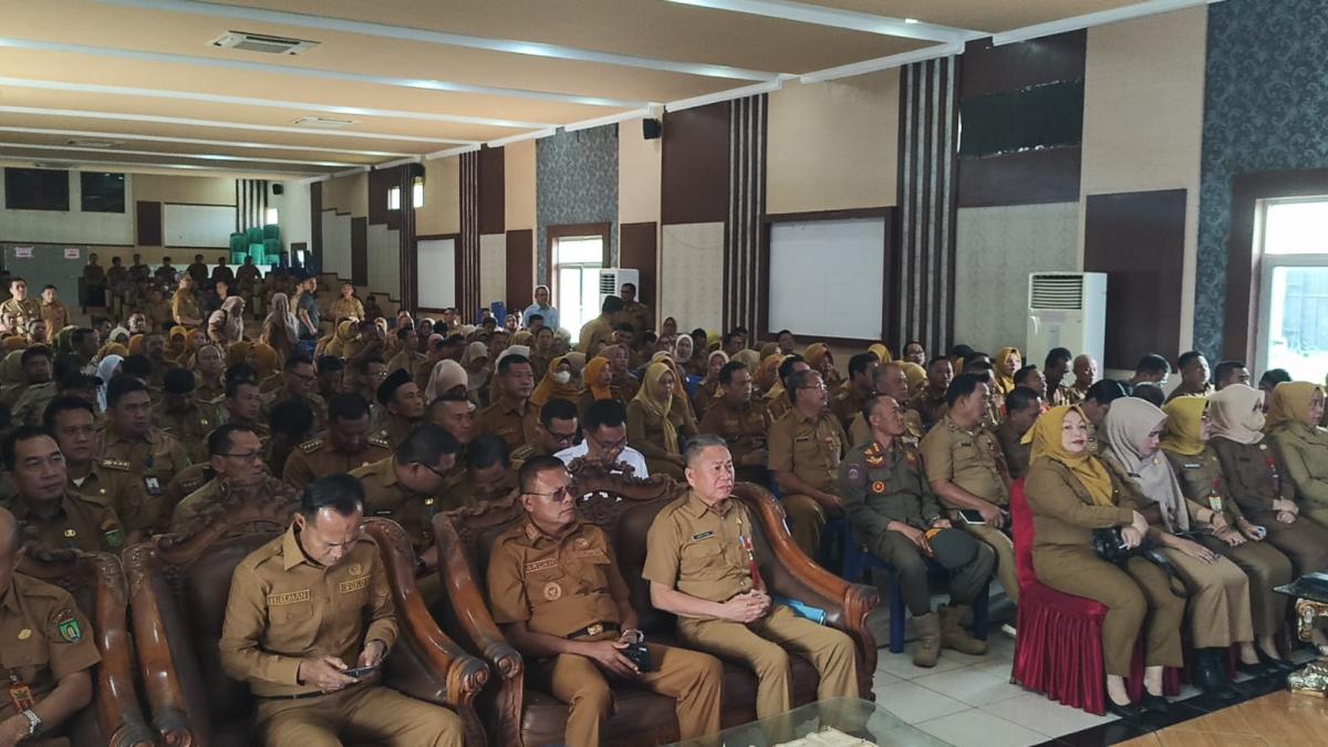 “Seluruhnya hadir di sini, termasuk kades, lurah dan camat. Tujuannya agar kita bisa maksimal membantu masyarakat. Jangan bosan melayani masyarakat,” pesannya.