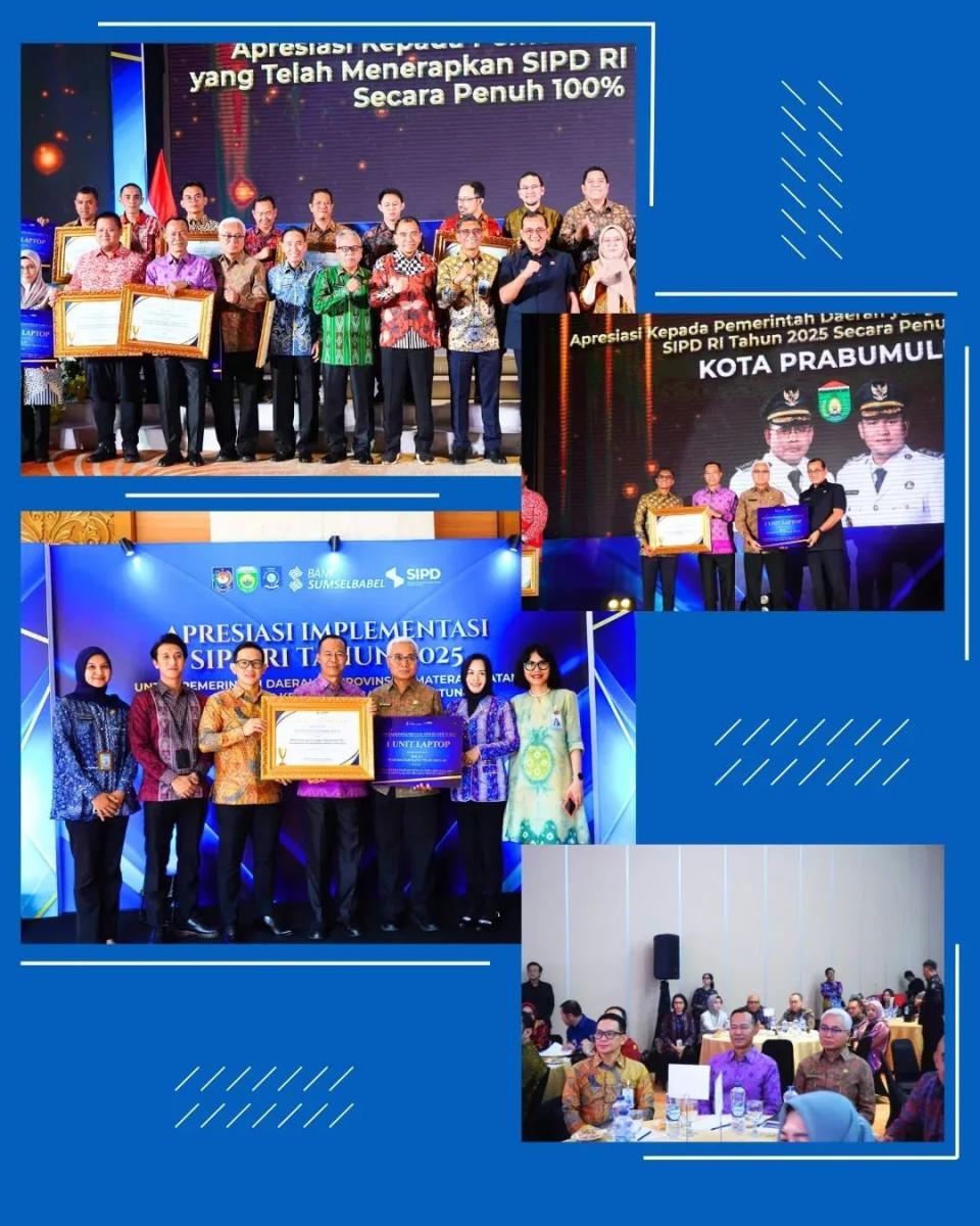 Penghargaan tersebut diserahkan dalam kegiatan Pemberian Penghargaan atas Apresiasi Implementasi SIPD RI Tahun 2025 bagi Pemerintah Daerah Provinsi Sumatera Selatan dan Provinsi Kepulauan Bangka Belitung, yang berlangsung di Palembang.