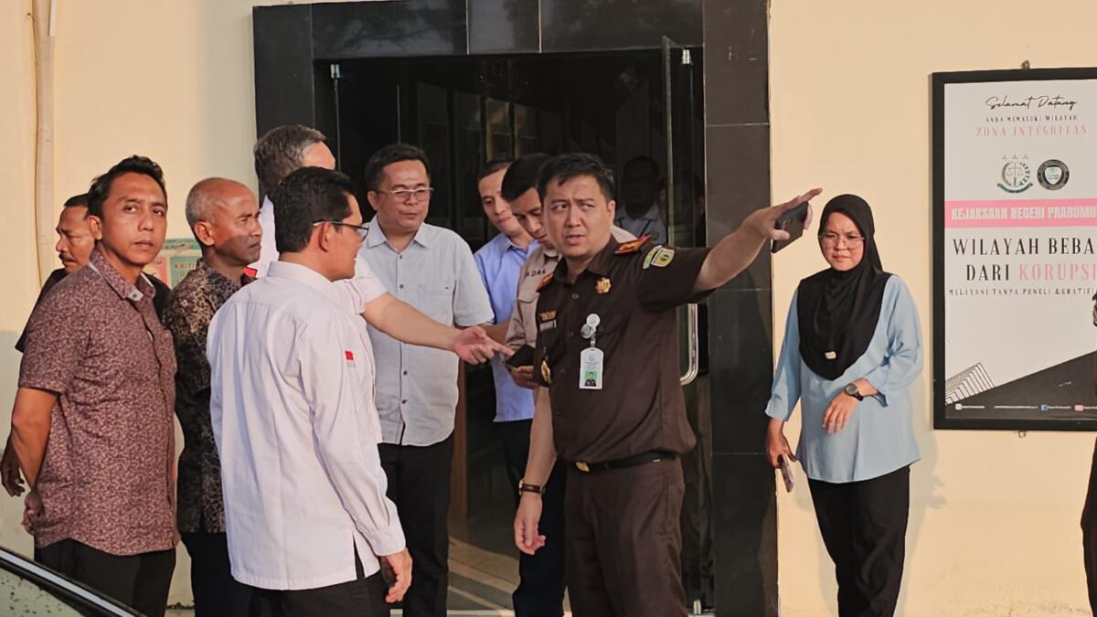 PRABUMULIH, FS.COM – Mendengar adanya permasalahan pagar beton Kantor Kejari Prabumulih miring, Pimpinan dan Komisi III DPRD langsung melakukan sidak, Selasa sore, 15 Agustus 2023 didampingi Inspektur Daerah Prabumulih, H Indra Bangsawan SH MM bersama jajaran.