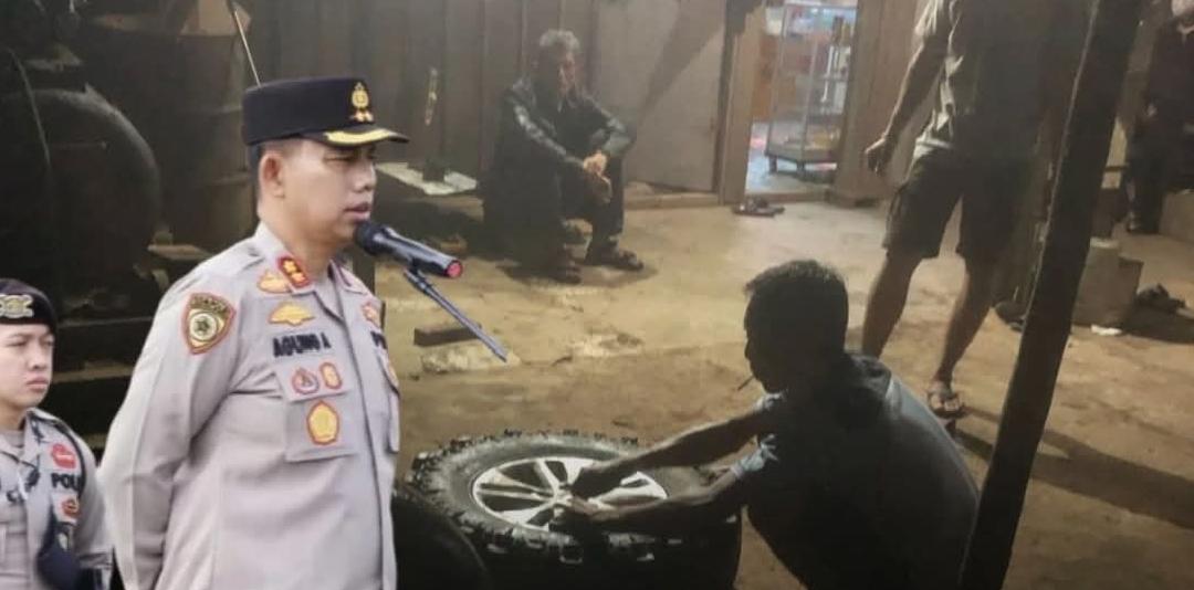 Mengetahui ada pemudik mengalami kendala di wilayahnya, personel Polsek BTS Ulu langsung mengecek pemudik mengalami pecah ban, Kamis dini hari, 3 April 2025 (di Jalan Lintas Mura – PALI – Palembang tepat di Desa Tambangan.