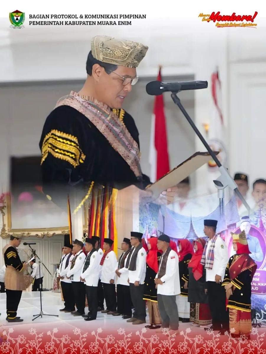 Pengukuhan berlangsung meriah dan sarat nuansa budaya dalam rangkaian halal bihalal bertema “Semalam di Ranah Minang”. Dalam prosesi tersebut, Bupati Edison tampil mengenakan pakaian adat penghulu Minangkabau, sementara Ketua TP PKK Kabupaten Muara Enim, Hj. Heni Pertiwi Edison, anggun dalam balutan busana adat bundo kanduang.
