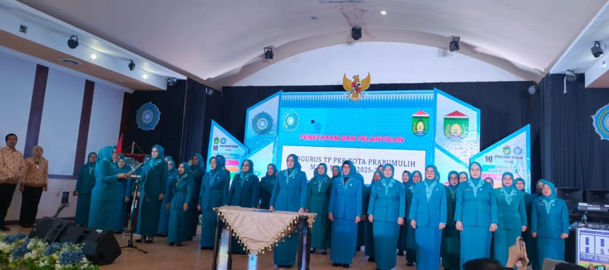PRABUMULIH, FAJARSUMSEL.COM – Ketua TP PKK Prabumulih, Hj Linda Arlan melakukan pelantikan kepengurusan TP PKK disaksikan Cak Arlan dan Bang Franky serta Sekda, H Elman ST MM di Gedung Kesenian Rumdin Wako, Kamis, 10 April 2025.