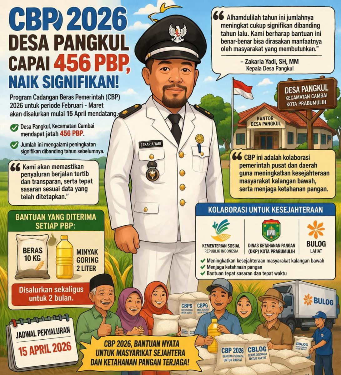 PANGKUL, FAJARSUMSEL.COM – Program Cadangan Beras Pemerintah (CBP) tahun 2026 untuk periode Februari–Maret dijadwalkan mulai disalurkan pada 15 April mendatang.