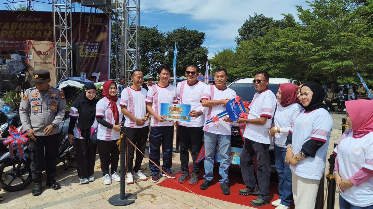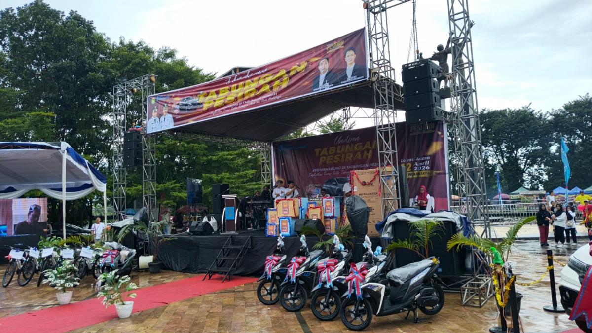 Pengundian yang digelar di Taman PJ, Minggu (12/4/2026) tersebut berlangsung meriah dan disambut antusias ribuan nasabah. Darma Yanti menjadi salah satu nasabah beruntung dari total 8.100 peserta Tabungan Pesirah yang mengikuti program undian periode Januari hingga Desember 2025.