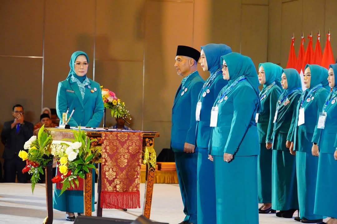 Hj Febrita Lustia Herman Deru menyampaikan, harapannya agar kepengurusan TP PKK baru dapat semakin bersinergi pemerintah daerah dalam mendukung pembangunan dan meningkatkan kesejahteraan keluarga hingga ke pelosok desa.