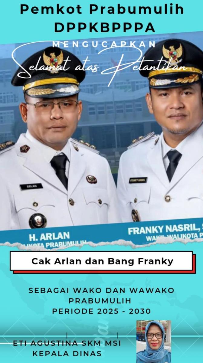 Beranda Ucapan DPPKBPPPA Prabumulih Mengucapkan Selamat Atas Dilantiknya Cak Arlan dan Bang Franky Sebagai Wako dan Wawako Prabumulih Periode 2025 - 2030 Ucapan DPPKBPPPA Prabumulih Mengucapkan Selamat Atas Dilantiknya Cak Arlan dan Bang Franky Sebagai Wako dan Wawako Prabumulih Periode 2025 – 2030Fajar Sumsel19 Februari 2025 Semoga Amanah dan Bisa Membangun Prabumulih dan Mensejahterakan Masyarakatnya 5 Tahun Ke Depan. Aminnnn!!!Baca JugaSegenap Jajaran BPKAD Prabumulih Mengucapkan Selamat Hari Raya Idul Fitri 1447 H/2026 M, Minal Aidin Wal Faizin, Mohon Maaf Lahir BatinApriansyah ST MH, Anggota DPRD Prabumulih, Ketua F Golkar Mengucapkan Minal Aidin Wal Faizin, Mohon Maaf, Lahir Batin, Idul Fitri 1447 H/2026 MDinas PUPR Prabumulih Mengucapkan Selamat Idul Fitri 1447 H/2026 M, Mohon Maaf Lahir BatinSegenap Jajaran DKP Prabumulih Mengucapkan Selamat Idul Fitri 1447 H/2026 M, Mohon Maaf Lahir BatinDPMPTSP Prabumulih Mengucapkan Selamat Idul Fitri 1447 H/2026, Mohon Maaf Lahir BatinJajaran Inspektorat Prabumulih Mengucapkan Selamat Hari Raya Idul Fitri 1447 H/2026