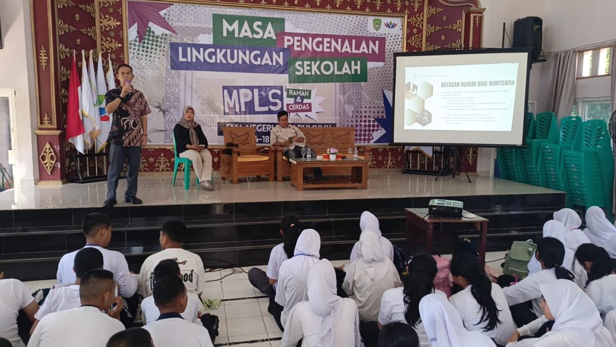 Ketua PWI Prabumulih, Ronald Artas, menyampaikan apresiasi kepada pihak sekolah telah memberikan kesempatan kepada insan pers berbagi ilmu dan pengalaman dalam bidang jurnalistik.