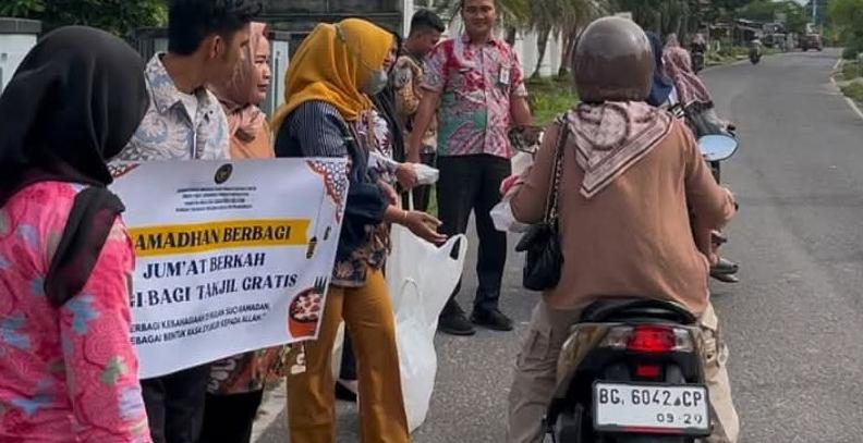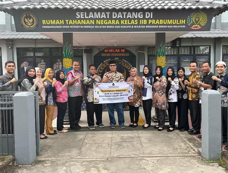 PRABUMULIH, FAJARSUMSEL.COM Memperingati Hari Bhakti Pemasyarakatan (HBP) ke-61 bertema ‘Pemasyarakatan Pasti Bermanfaat’, Plt Kepala Rumah Tahanan Negara (Karutan) Kelas IIB Prabumulih, Febryanto AMdIP SH MH beserta jajaran menggelar aksi sosial berbagi takjil kepada pengguna jalan dan warga sekitar kantornya, Jumat, 21 Maret 2025.