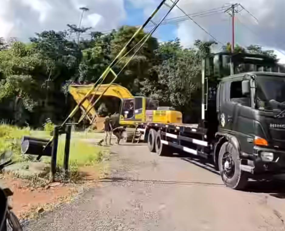 Menggunakan alat berat pribadinya, Cak Arlan dan Bang Franky merapikan Stadion Talang Djimar.