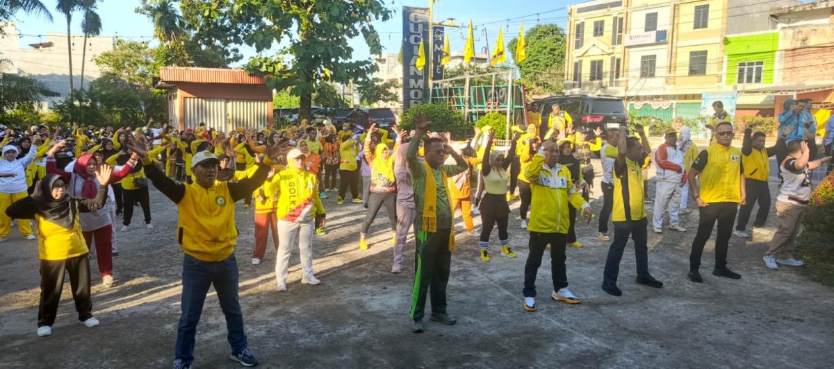 PRABUMULIH, FAJARSUMSEL.COM – Memperingati Hari Ulang Tahun (HUT) ke-61 Partai Golkar, Dewan Pimpinan Daerah (DPD) Golkar Kota Prabumulih menggelar kegiatan senam bersama dan bakti sosial berupa pembagian sembako kepada masyarakat, Sabtu, 4 Oktober 2025.