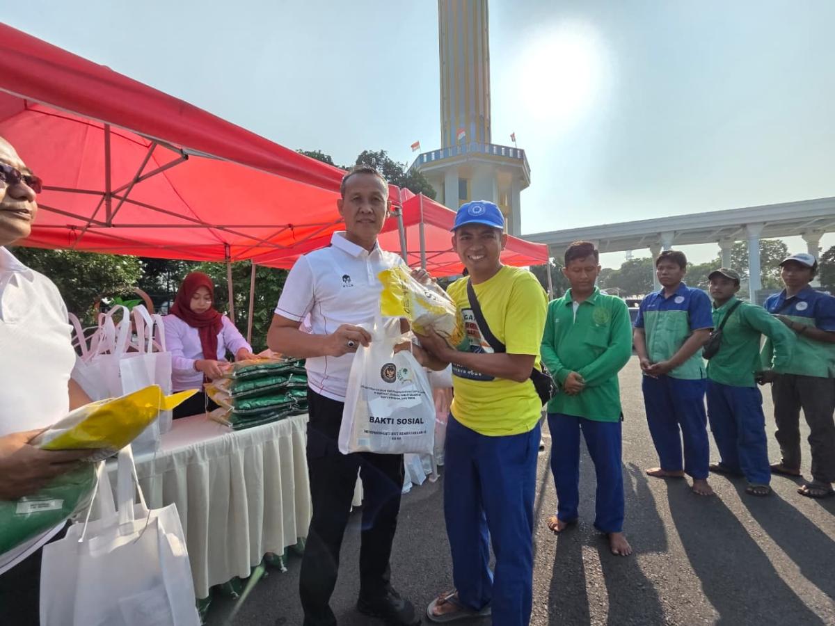 Setibanya di lokasi, Kakanwil beserta jajaran melaksanakan bakti sosial dengan membagikan 100 paket sembako kepada masyarakat umum dan pengemudi ojek online di sekitar masjid. “Jalan sehat ini bukan hanya menyehatkan tubuh, tapi juga mempererat kebersamaan dan rasa syukur. Melalui bakti sosial ini, kami ingin berbagi kebahagiaan dan memberi manfaat langsung kepada masyarakat,” ujar Kadiyono.