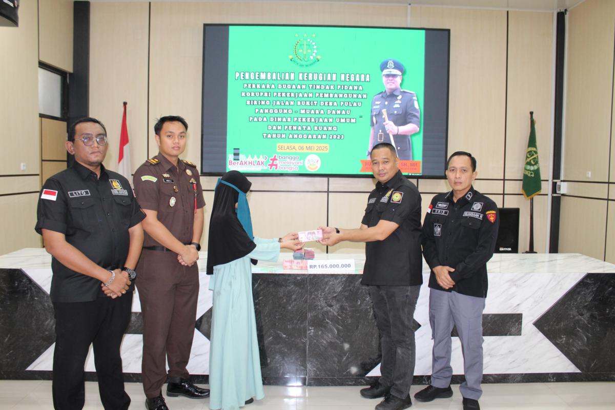 “Selasa, 06 Mei 2025, sekitar pukul 12.00 WIB bertempat di Kantor Kejari Muara Enim Penyidik Tindak Pidana Khusus menerima pengembalian kerugian negara dalam perkara dugaan tindak pidana korupsi pekerjaan pembangunan siring Jalan Bukit Desa Pulau Panggung – Muara Danau Dinas PUPR 2023 sebesar Rp 165 juta,” ujar Anjas, sapaan akrabnya.