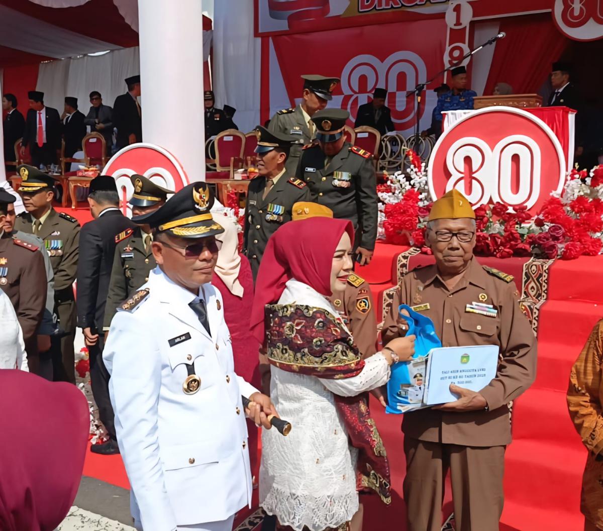 PRABUMULIH, FAJARSUMSEL.COM – Usai upacara pengibaran bendera di Rumah Dinas Wali Kota Prabumulih, Minggu, (17/8/2025), suasana peringatan HUT ke-80 Republik Indonesia semakin hangat dengan adanya penyerahan 84 paket sembako bagi para veteran dan Piveri (Persatuan Istri Veteran Republik Indonesia).