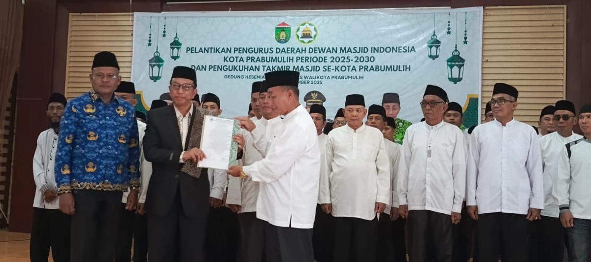 PRABUMULIH, FAJARSUMSEL.COM – Kepengurusan Dewan Masjid Indonesia (DMI) Prabumulih periode terbaru resmi dilantik Ketua DMI Sumsel, DR KA Bukhori MHum bertempat di Rumdin Wako, Rabu, (17/9/2025).