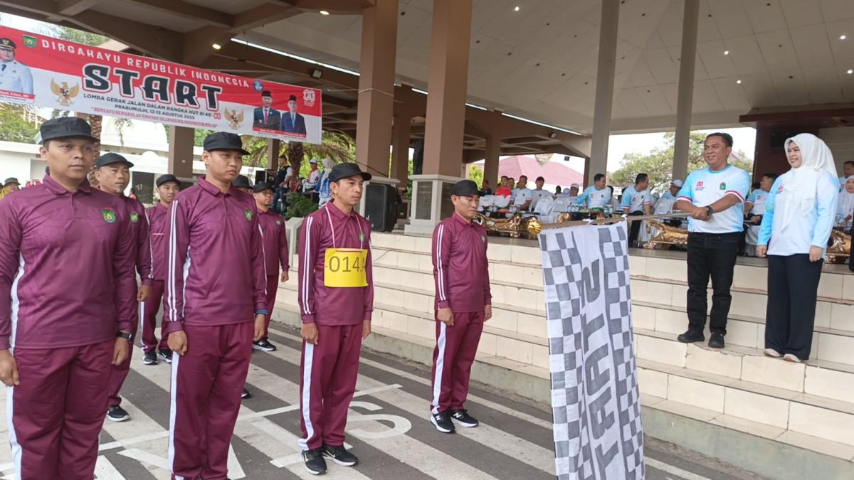 PRABUMULIH, FAJARSUMSEL.COM – Sebanyak 202 peserta ambil bagian dalam lomba gerak jalan umum yang berlangsung meriah, Rabu, 13 Agustus 2025. Start dari Pendopoan Wako Prabumulih, lomba ini resmi dilepas Wako, H Arlan didampingi Wawako, Franky Nasril SKom MM, serta disaksikan jajaran Forkopimda.