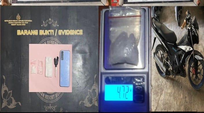 Barang bukti yang diamankan antara lain; 1 paket sabu seberat bruto 4,72 gram, 1 plastik klip bening, 1 helai tisu warna putih, 1 unit HP VIVO Y12 warna biru beserta SIM card, dan 1 unit sepeda motor Honda Sonic hitam-putih tanpa nopol beserta kunci kontak.