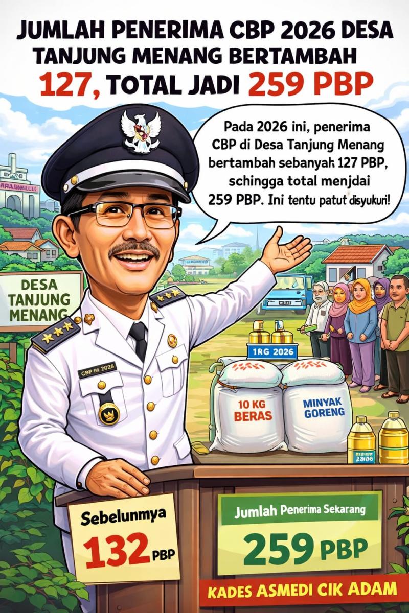 “Pada 2026 ini, penerima CBP di Desa Tanjung Menang bertambah sebanyak 127 PBP, sehingga total menjadi 259 PBP. Ini tentu patut disyukuri,” ujar Asmedi, Rabu, 8 April 2026.