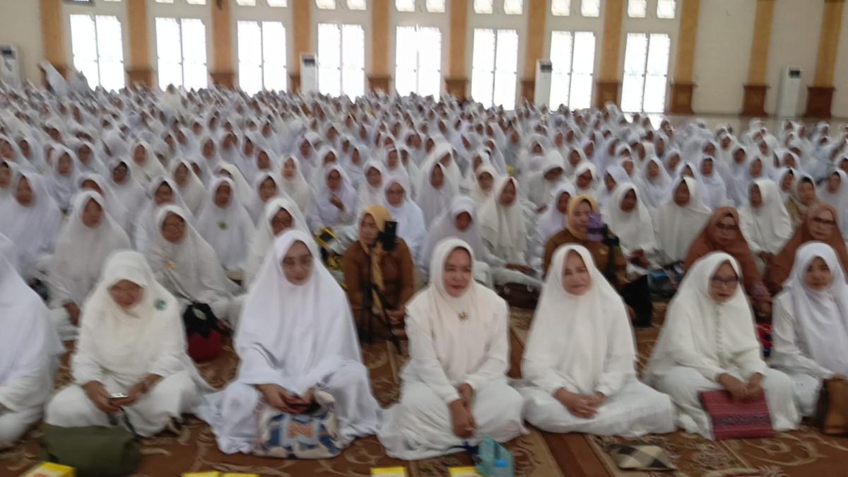 Ribuan ibu-ibu majelis taklim, memadati kegiatan tersebut dibuka langsung Wako Prabumulih H Arlan disaksikan Ketua TP PKK, Hj Linda Arlan dan Staff Ahli TP PKK, Aya Manan Franky.