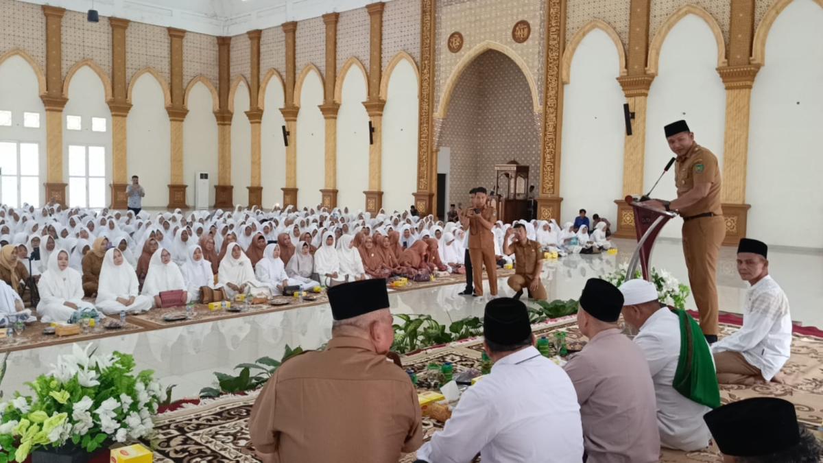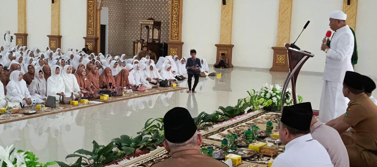 PENGAJIAN : Wawako Prabumulih, Franky Nasril SKom MM membuka kegiatan pengajian dan ceramah majelis taklim digelar Dinsos di Masjid Komplek Islamic Center, Senin. Foto : Rian/FAJARSUMSEL.COM