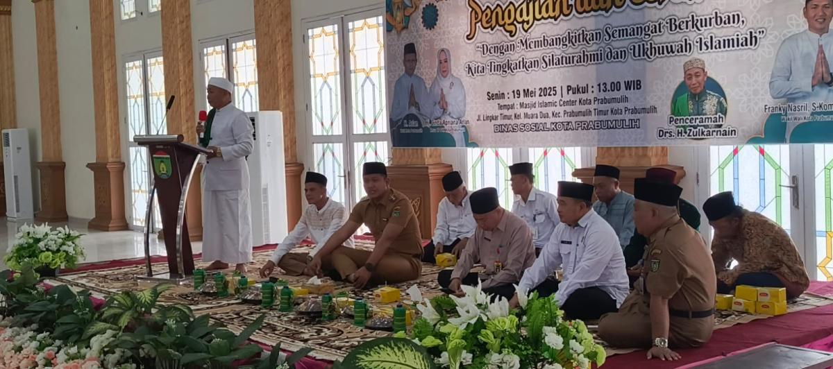 PRABUMULIH, FAJARSUMSEL.COM – Dinsos Prabumulih mengelar kegiatan pengajian dan ceramah perdana di Masjid Komplek Islamic Center, Senin, 18 Mei 2025.