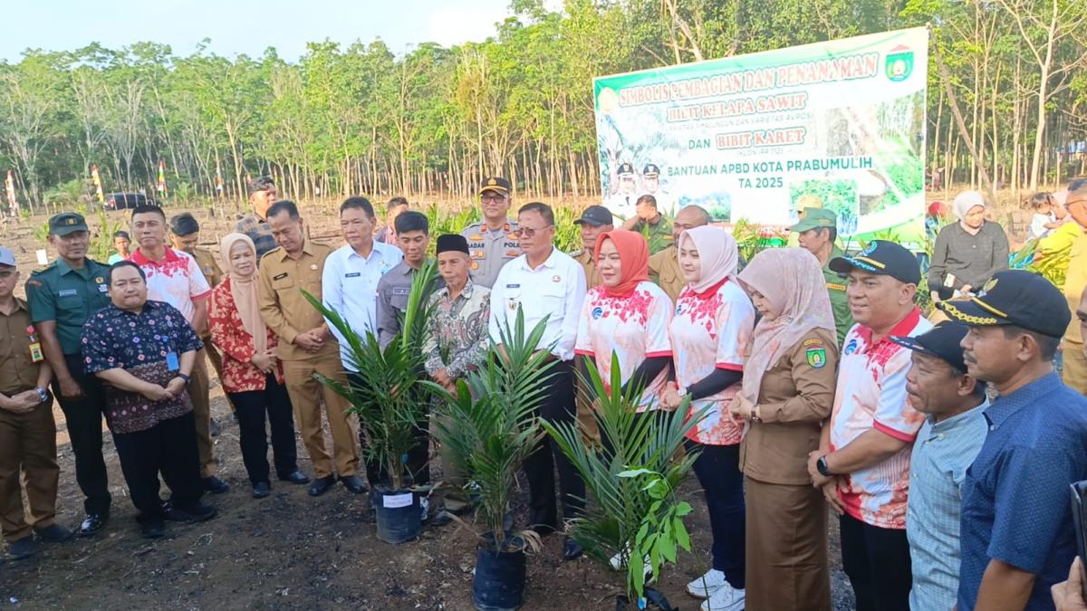 PRABUMULIH, FAJARSUMSEL.COM – Pemerintah Kota (Pemkot) Prabumulih melalui Dinas Pertanian merealisasikan janji kampanye Wako, H Arlan (Cak Arlan) bersama Wawako, Franky Nasril SKom MM, memberikan bantuan bibit sawit dan karet kepada masyarakat. Penyerahan dilakukan secara simbolis di Desa Tanjung Telang, Kecamatan Prabumulih Barat, Selasa, (26/8/2025).
