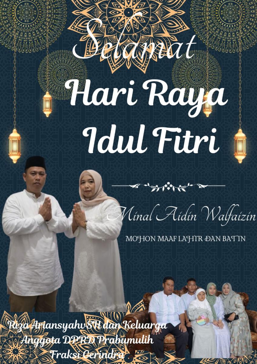 Riza Ariansyah SH, Anggota DPRD Prabumulih, Fraksi Gerindra Mengucapkan Selamat Hari Raya Idul Fitri 1447 H/2026 M