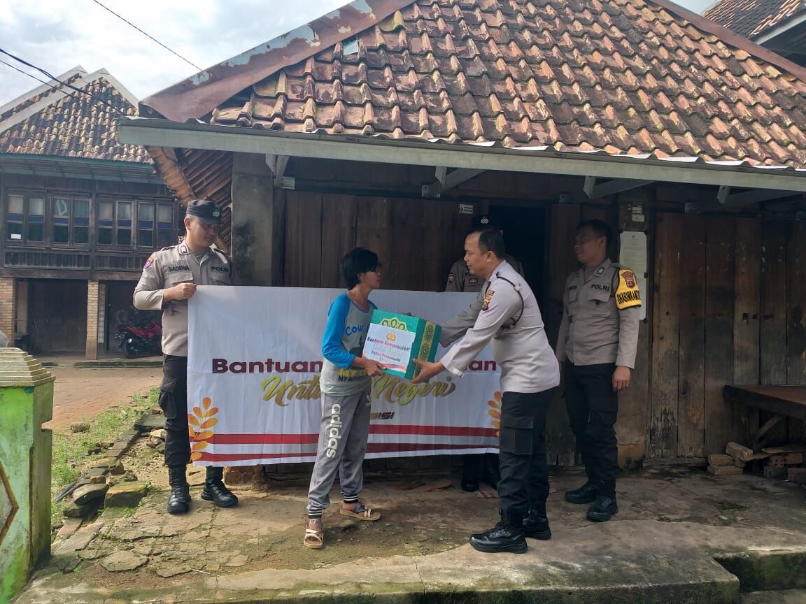 BANTUAN KEMANUSIAAN: Personel Satbinmas Polres Prabumulih bersama Bhabinkamtibmas Sungai Medang menyerahkan Bantuan Kemanusiaan ke warga Sungai Medang, Kamis. Foto : Ist/FS.COM