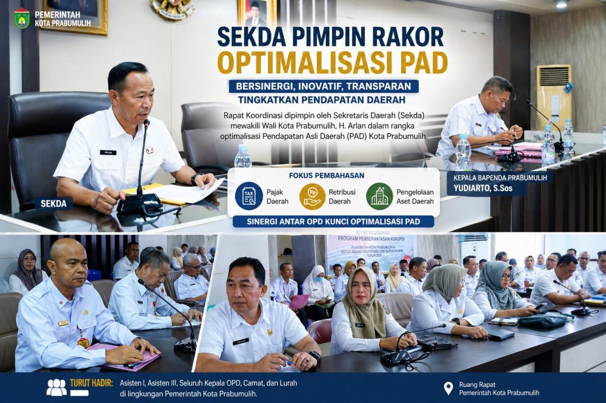 PRABUMULIH, FAJARSUMSEL.COM – Pemerintah Kota Prabumulih terus mengintensifkan langkah strategis dalam meningkatkan Pendapatan Asli Daerah (PAD). Hal ini mengemuka dalam Rapat Koordinasi (Rakor) yang dipimpin Sekretaris Daerah (Sekda), mewakili Wali Kota Prabumulih, H. Arlan.