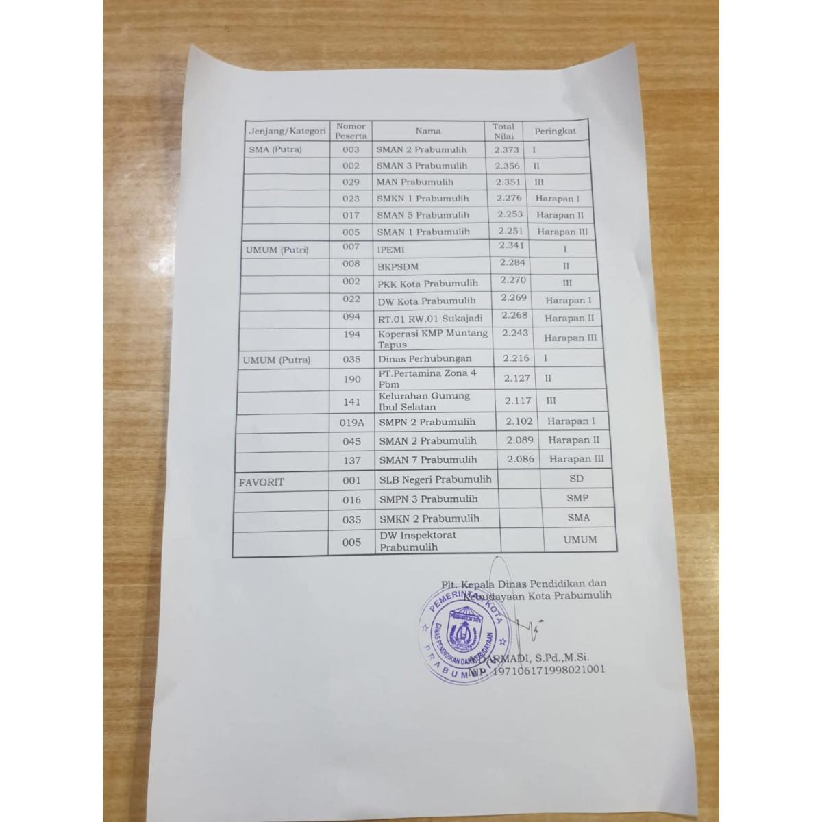 PRABUMULIH, FAJARSUMSEL.COM – Setelah seharian berlangsung meriah, panitia lomba gerak jalan dalam rangka HUT RI ke-80 akhirnya mengumumkan para juara, Rabu malam, 13 Agustus 2025.