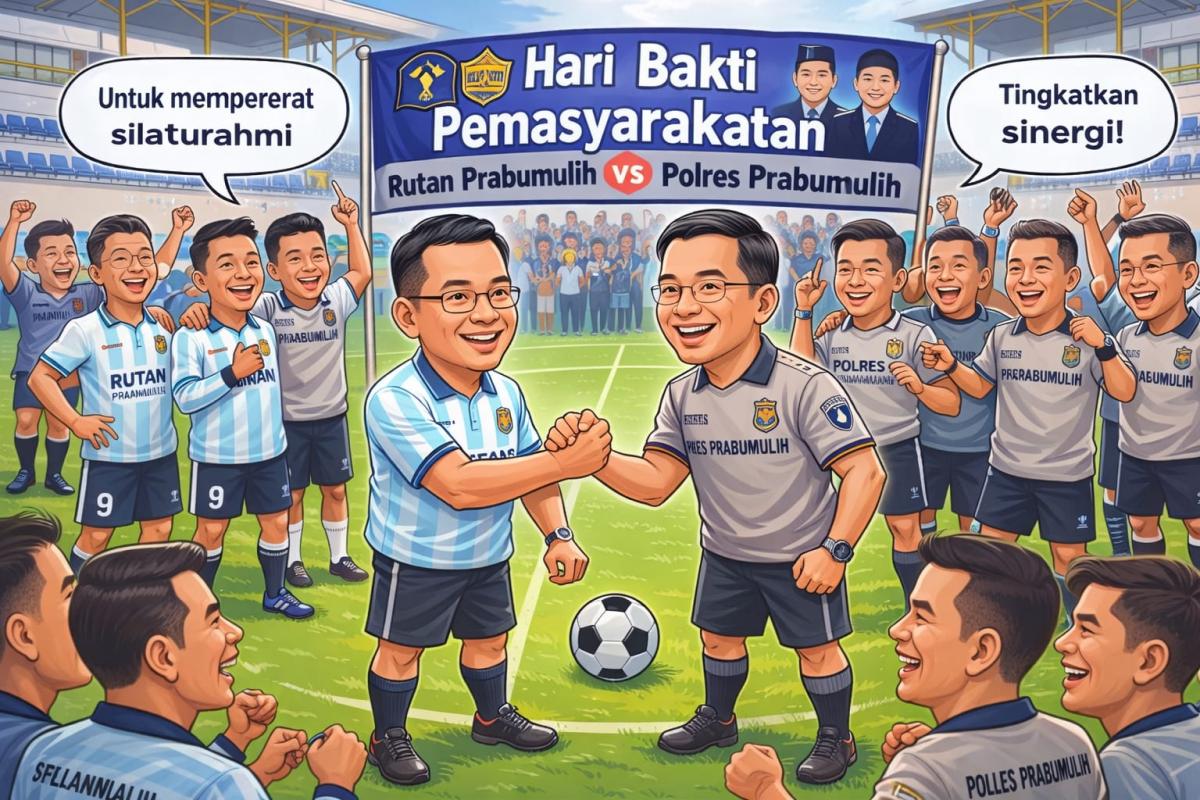 PRABUMULIH, FAJARSUMSEL.COM – Dalam semangat kebersamaan dan memperingati Hari Bakti Pemasyarakatan, Rumah Tahanan Negara (Rutan) Kelas IIB Prabumulih menggelar pertandingan sepakbola persahabatan melawan jajaran Polres Kota Prabumulih, Rabu (15/4/2026) sore.
