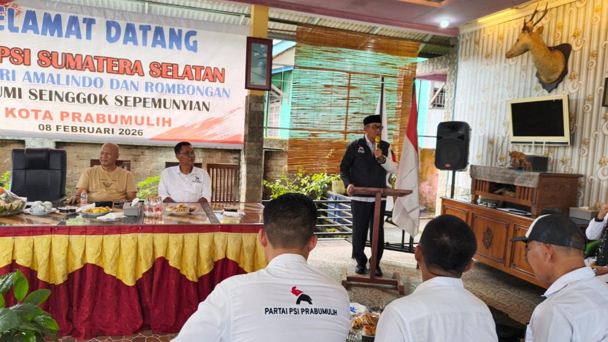 PRABUMULIH, FAJARSUMSEL.COM – Ketua Dewan Pimpinan Wilayah (DPW) Partai Solidaritas Indonesia (PSI) Sumatera Selatan, DR Ir H Heri Amalindo MM, melakukan silaturahmi sekaligus konsolidasi organisasi ke DPD PSI Prabumulih, Minggu, (8/2/2026).
