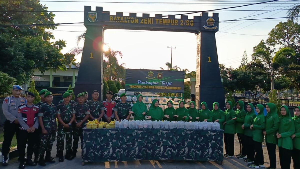 PRABUMULIH, FAJARSUMSEL.COM – Persit KCK Yonzipur 2/SG bersama prajuritnya berkolaborasi bersama personel Polres Prabumulih, mengelar kegiatan berkah ramadhan.