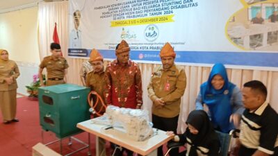 BANTUAN : Staff Ahli Wako Prabumulih, Mulyadi Karomah SPd MSi dan Kadisnaker, H Sanjay Yunus…