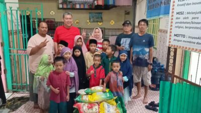 PANTI : Paslon Nomor 2, Fikri dan Syamdakir usai kampanye akbar menyalurkan sembako ke 5…
