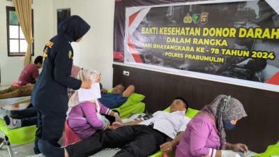 DONOR DARAH : Polres Prabumulih mengelar donor darah di Aula Besar dalam rangka HUT Bhayangkara…