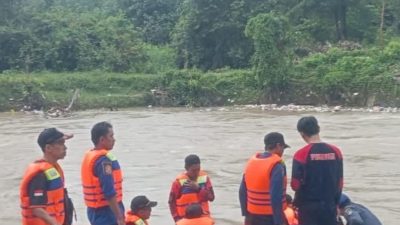 SUSUR : Kalaksa BPBD Prabumulih, Sriyono SH melakukan susur sungai di Sungai Kelekar kawasan Desa…
