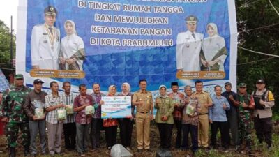 BANTUAN : Pinca BSB Prabumulih, Meyza Hertati bersama Wawako, H Andriansyah Fikri SH menyerahkan bibir…