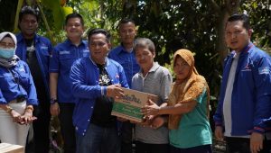 BANTUAN : Ketua Demokrat Prabumulih, Deni Victoria SH MSi bersama pengurus, AMPD, BMI, Srikandi Demokrat,…
