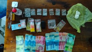 Tersangka, Herpeli, warga Gaung Asam dan Barang Bukti 7 paket kecil sabu. Foto : Polsek…
