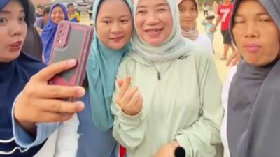 SENAM : Ir Hj Suryanti Ngesti Rahayu melakukan senam di Kelurahan Anak Petai disambut antusias…