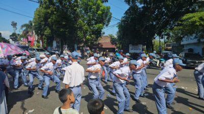 GERAK JALAN : Peserta gerak jalan dari tingkat SD hingga SMA di Prabumulih memadati Jalan…
