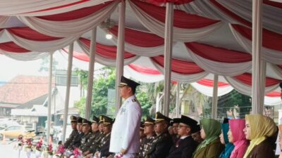 UPACARA : Pj Bupati Muara Enim, H Henky Putrawan SPt MSi MM disaksikan Forkominda memimpin…