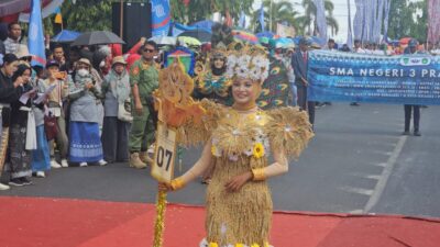 AKSI : Para pelajar SMAN 3 Prabumulih mengelar berbagai aksi di depan panggung kehormatan ketika…