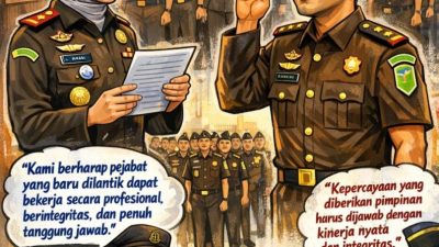 PELANTIKAN : Karikatur pelantikan Kasi Pidsus Kejari Prabumulih, Volanda Azis Saleh. Foto : Ai/FS.COM PRABUMULIH,…