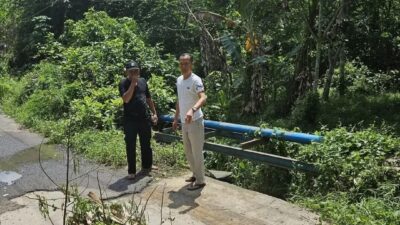 TINJAU : PJ Wako Prabumulih, H Elman ST MM meninjau lokasi jalan longsor di Kelurahan…