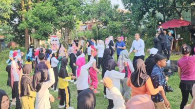 SENAM SEHAT : Cak Arlan dan Franky senam sehat bersama masyarakat di Kelurahan Prabu Jaya,…