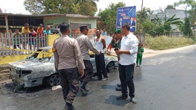 TKP : Kapolsek Prabumulih, AKP Herry Sulistyo mengecek TKP mobil kebakaran di Jalan Kemala, Kelurahan…
