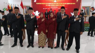LANTIK : Sekretaris KPU, Yasrin Abidin SSos mendampingi Komisioner KPU Prabumulih terpilih dilantik di KPU…